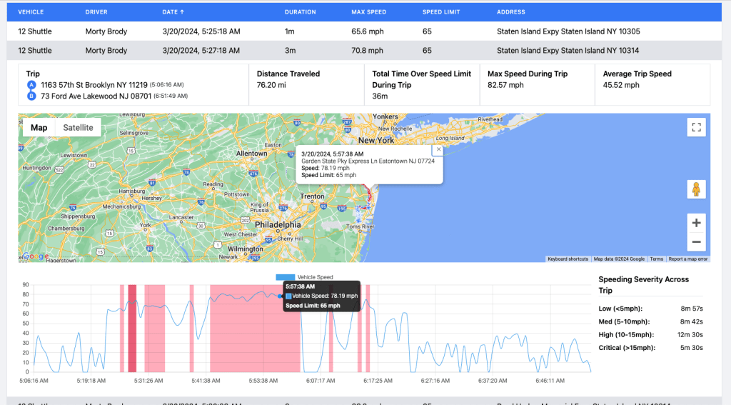 - Comprehensive Speeding Dashboard This intuitive dashboard presents a complete view of all your drivers and vehicles and their speeding violations. View total speeding events, duration of each overspeeding event, exact location, with speed measured against the posted speed limit.